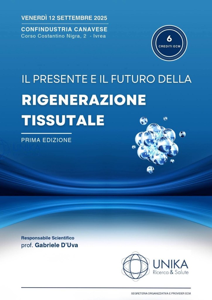 Si terrà venerdì 12 settembre 2025, presso la sede di Confindustria Canavese, un’importante giornata di studio e confronto dal titolo: “Il presente e il futuro della rigenerazione tissutale”, in programma dalle 9:00 alle 18:30.